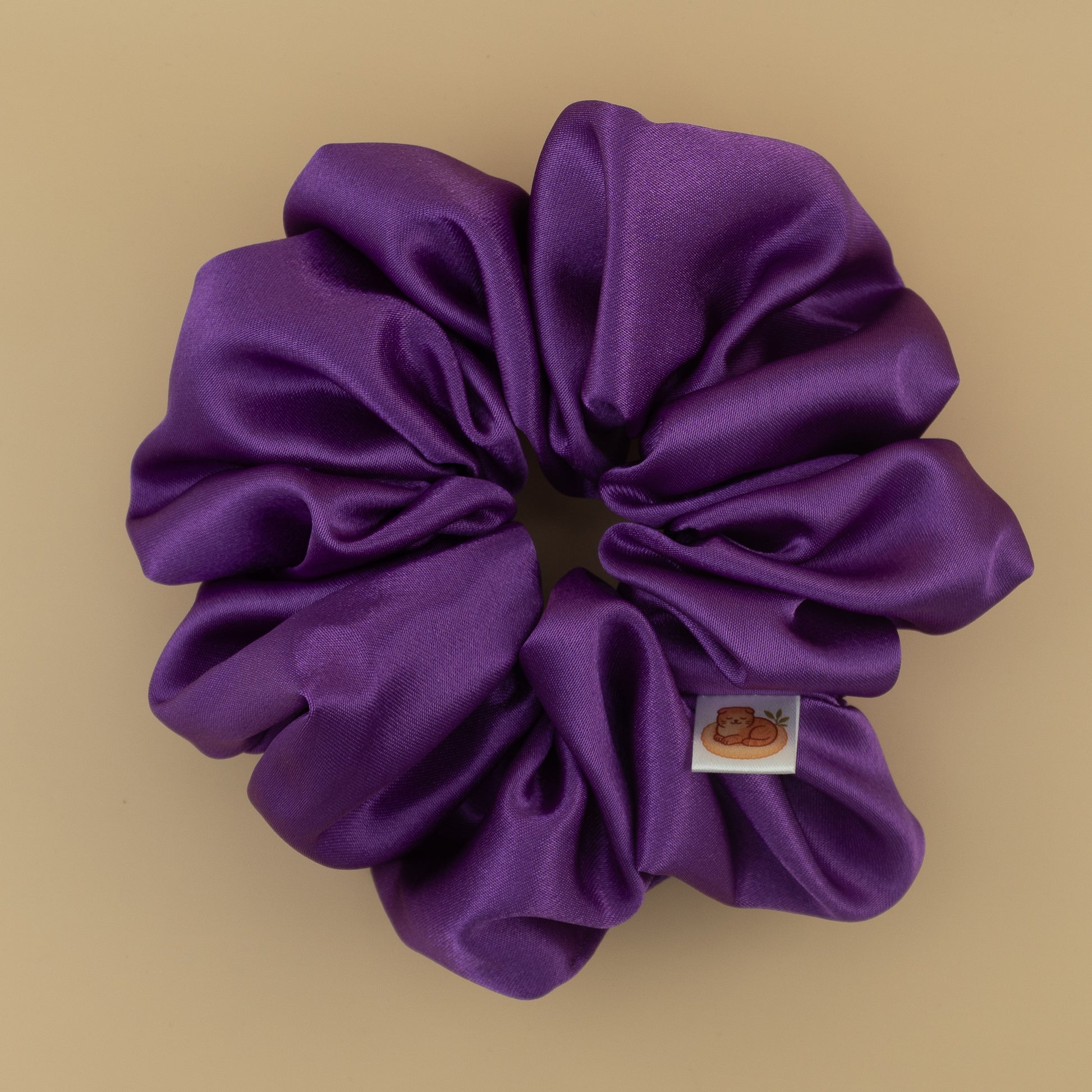 Glossy, smooth, and strikingly vibrant, this scrunchie brings a bold touch of purple glamour to your look. Its satin texture reduces frizz and breakage while keeping your hairstyle secure and stylish.